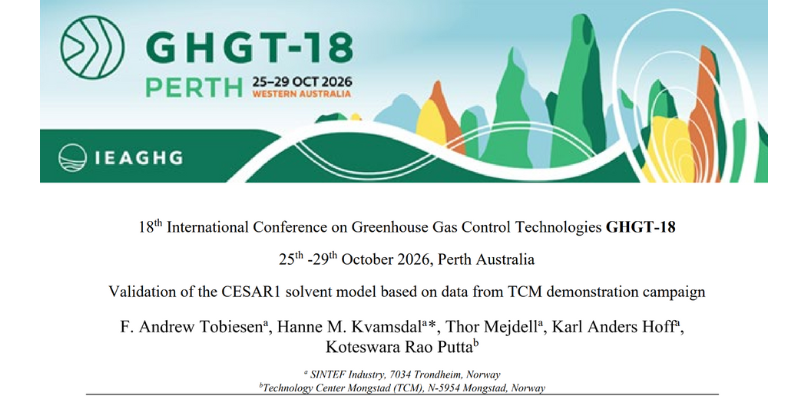 Authors: F. Andrew Tobiesena, Hanne M. Kvamsdala, Thor Mejdella, Karl Anders Hoffa (SINTEF Industry), Koteswara Rao Putta (Technology Center Mongstad).